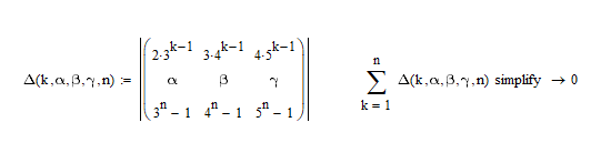 I used the symbolic mathematics part of Mathcad to do this. I guess that with a lot of tedious manipulation by hand you would be able to show the coefficients of alpha, beta and gamma are all zero. I didn't see any nice shortcut!