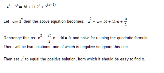"Find all solutions to 4^x - 2^x = 56 + 11*2^x + 2^(x - 1)."