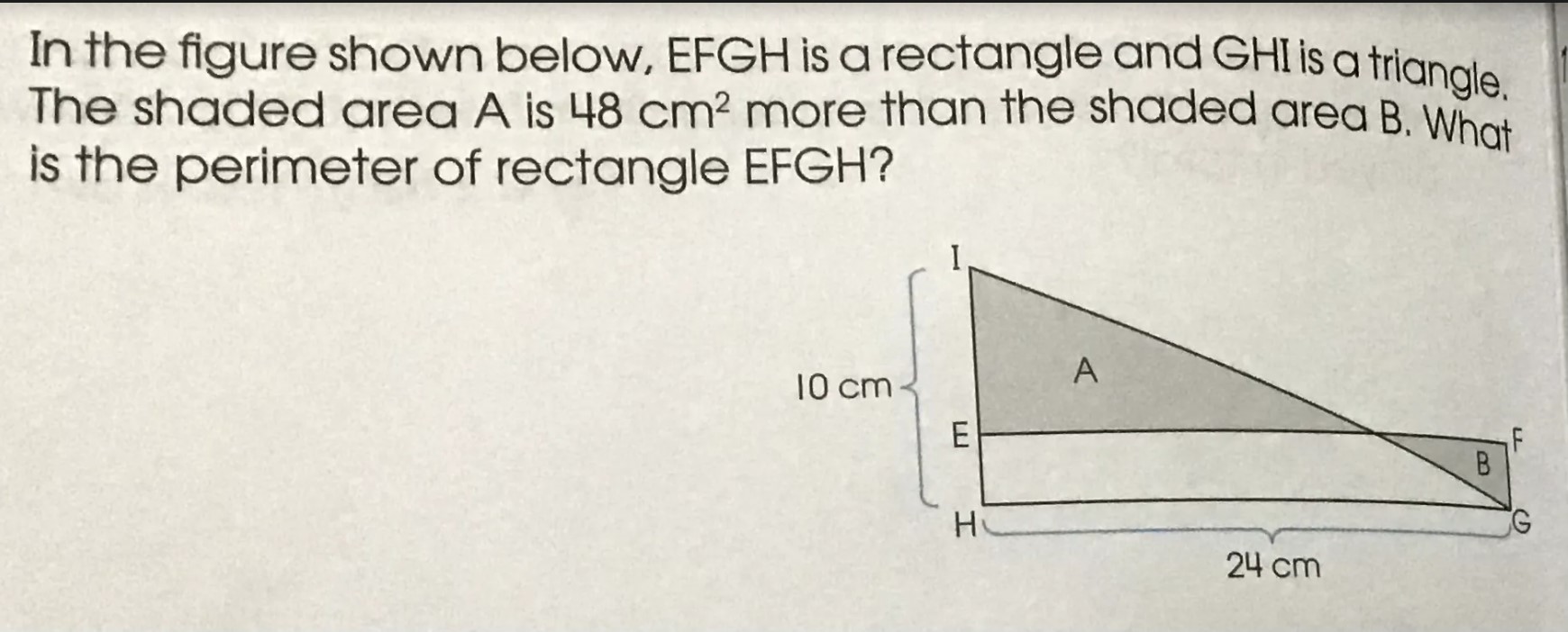 Total area of figure = Area△GHI + Shaded area B