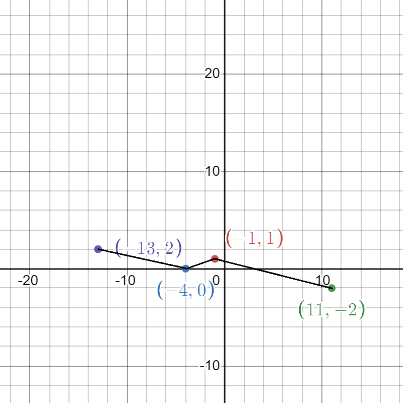 \((-4,4)\) in f(x) ⇔ \((-13,2)\) in g(x)