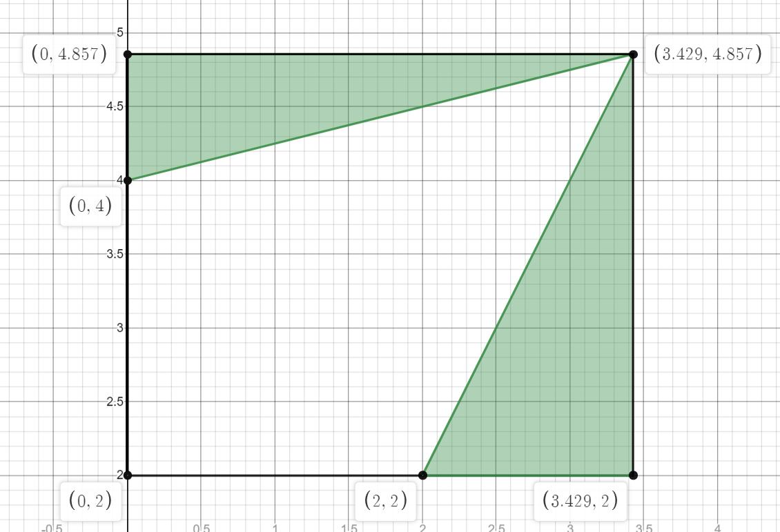 This means that the area of the triangle is: \({480\over49}-{72\over49}-{100\over49}=\color{brown}\boxed{308\over49}\)