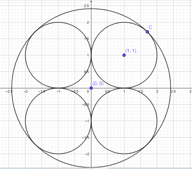 I get that the radius = 1 + sqrt (2)