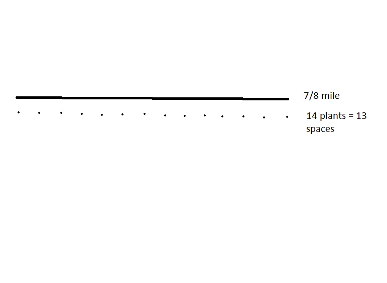 7/8 / 14 = 1/16 mi apart <======= this is how they calculated the answer