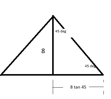 Area of the triangle on the right is 1/2 b h === 1/2 (8 tan 45)(8)