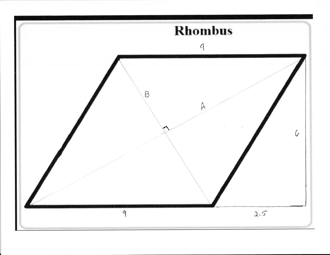 Now to find B : 9^2 = (1/2(12.97))^2 + (1/2B)^2 results in B=12.48 yd