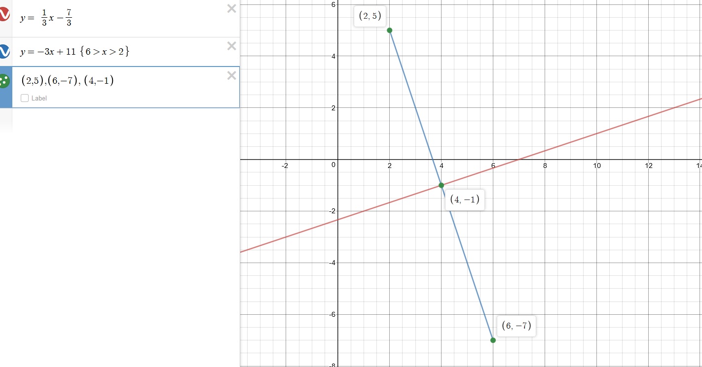 y (5+ -7)/2 = -1 so midpoint is (4,-1) and slope is 1/3