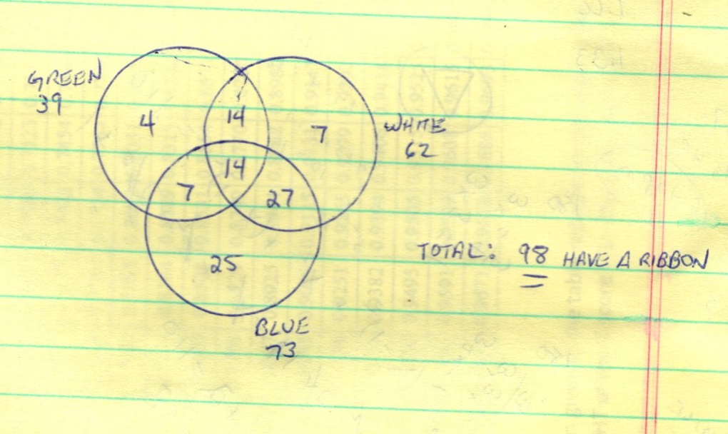 then start where they all overlap 14 have all 3 ribbons