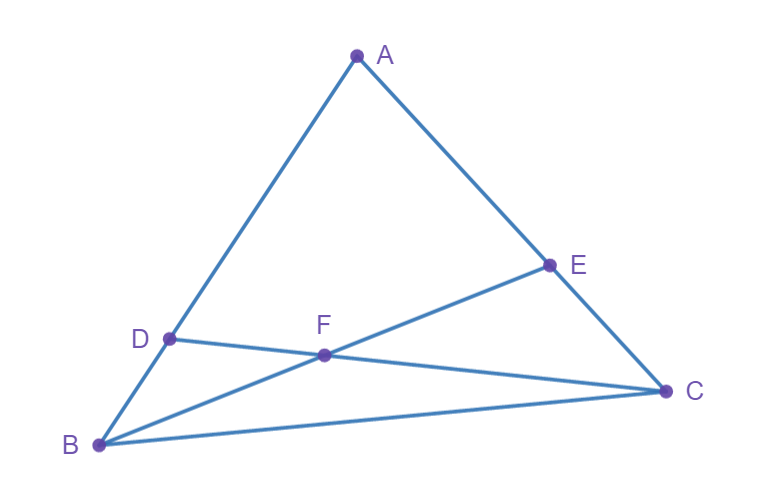 Similarly, \(\frac{AE}{EC}=\frac{3}{2}\). With these ratios, we also know the ratios of the area of some triangles, which we can use to our advantage.