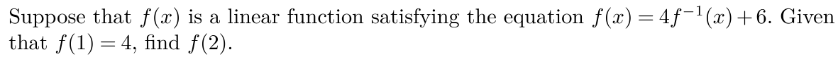\(\text{3. $f(x) = 4f^{-1}(x) + 6$ }\)