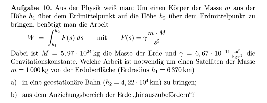 \(\text{$10 b$) aus dem Anziehungsbereich der Erde "hinauszubefördern" ?}\)