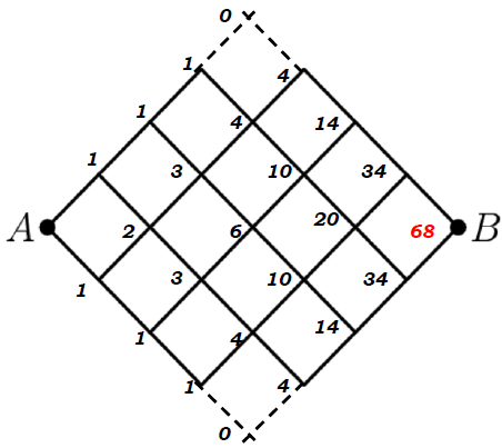 \(\begin{array}{rcll} \displaystyle F_n &=& \displaystyle \sum_{k \mathop = 0}^{\Big\lfloor {\dfrac {n - 1} 2}\Big\rfloor } \dbinom {n - k - 1} k \\ &=&\displaystyle \binom {n - 1} 0 + \binom {n - 2} 1 + \binom {n - 3} 2 + \dotsb + \binom {n - j} {j - 1} + \binom {n - j - 1} j \quad \text{ where } \quad j = \Big\lfloor {\dfrac {n - 1} 2} \Big\rfloor \\ \end{array}\)