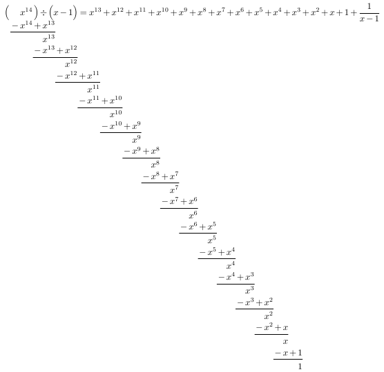 \(1 \\ +a^2+ab+b^2 \\ +a^4+a^3b+a^2b^2+ab^3+b^4 \\ +a^6+a^5b+a^4b^2+a^3b^3+a^2b^4+ab^5+b^6 \\ +\ldots\)