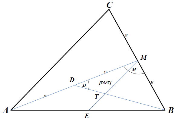 Find the area of triangle DMT if [ABC] =150. [ABC] is the area of triangle ABC