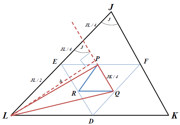 If the area of triangle PQR is 21, then what is the area of triangle LPQ?