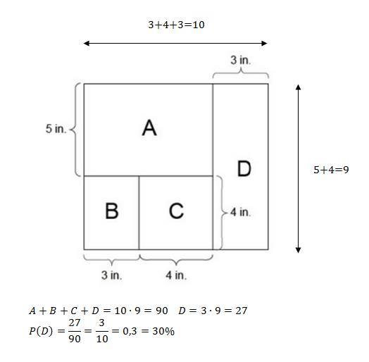 A point is selected at random inside the given figure. What is the probability the point will be in the region labeled D? Choose your answer, as a fraction in simplest form. P(D) =