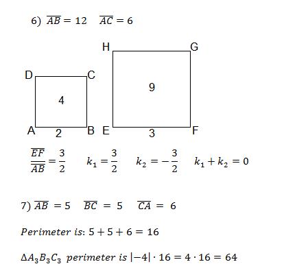 6)When a square with area 4 is dilated by a scale factor of k we obtain a square with area 9. Find the sum of all possible values of k.