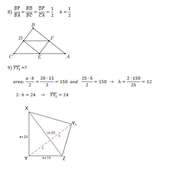 8)D, E and F are the midpoints of BC, CA, and AB respectively. A dilation maps triangle ABC to triangle DEF. What is the scale factor of this dilation?