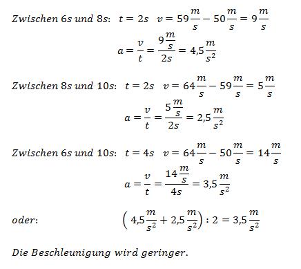 c. Wie verändert sich die Beschleunigung a zwischen t gleich 6s und t gleich 10s