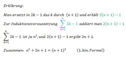 Bei der vollständigen Induktion ist zu beweisen, dass die Gleichung auch für das (n+1). Glied gilt und somit für alle n.