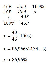 46 Personen sind 100%.Wie viele Prozent sind 40 Personen?