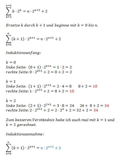 Ich komme bei dieser Aufgabe leider nicht weiter, mein Hauptproblem ist wie ich nun anfange wenn oben bereits (n+1) steht... Normalerweise steht ja dort immer (n)....