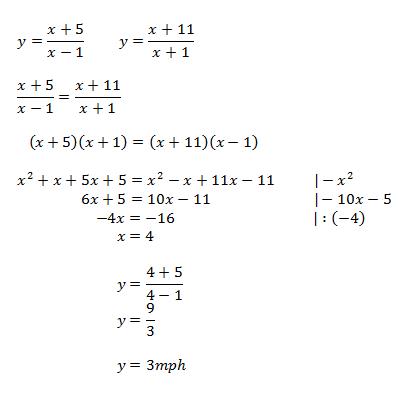 John and Jane go rock-climbing together. John climbs a height of (x+5) miles in (x-1) hours and Jane climbs a height of (x+11) miles in (x+1) hours. Is it possible that they were climbing at the same speed? If so, what must have been their speed, in miles per hour?