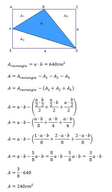 The rectangle in the diagram has an area equal to 640 \text{cm}^2cm2.