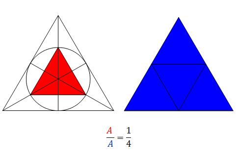 In a large equilateral triangle, we draw the incircle. We then draw a smaller equilateral triangle in the incircle.