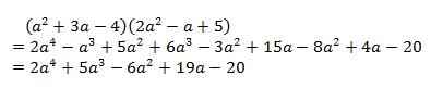 3. Multiply the polynomials (a2 + 3a – 4) and (2a2 – a + 5). Simplify the answer. Show your work.