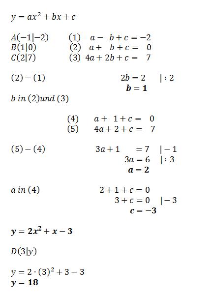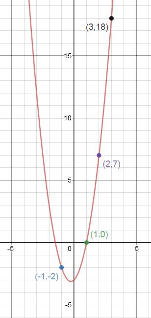 The graph of a quadratic function passes through the points with coordinates (-1,-2), (1,0), (2,7), and (3,y). Find y.