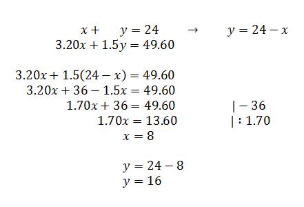 You will be making hanging flower baskets. The plants you have picked out are blooming annuals and non-blooming annuals. The blooming annuals cost $3.20 each and non-blooming annuals cost $1.50 each. You bought a total of 24 plants for $49.6. Write a linear system of equations that you can use to find how many of each type of plant you bought.