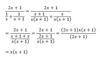 2. Write the expression as a simplified rational expression. Show your work. (2x+1)/((1)/(x)+(1)/(x+1))
