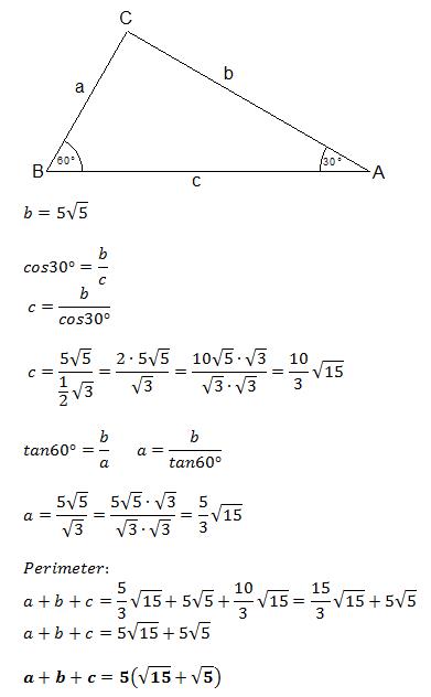 In right △ABC , the right angle is at C, m∠A=30∘ , and AC=5√ 5 units.