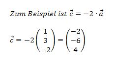 Man kann einen Vektor mit einer Zahl multiplizieren, dann wird er länger oder kürzer oder zeigt in die entgegengesetzte Richtung, ist aber trotzdem