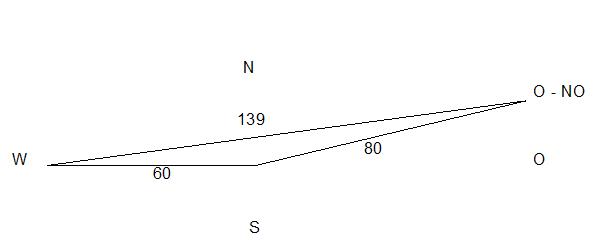 A ship travels 60 miles due East, then adjusts its course northward. After traveling 80 miles in that direction, the ship is 139 miles from its point of departure. What is the new bearing of the ship?