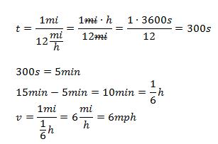 Ling lives 2 miles from school. It took him 15 minutes to bike from school to home. The first half of the distance he biked at a speed of 12 mph. What was his speed for the remaining distance? What was his average speed?