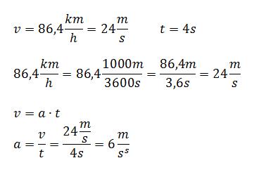 Ein Skispringer beschleunigt auf einer Schanze in 4 s auf 86,4 km/m. Berechne seine Beschleunigung.