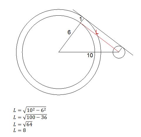 Two circles have radii 7 and 1, and their centers are 10 units apart. What are the lengths of the common tangents?