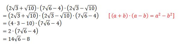 Simplify (2*sqrt(3) + sqrt(10))*(7*sqrt(6) - 4)*(2*sqrt(3) - sqrt(10)).
